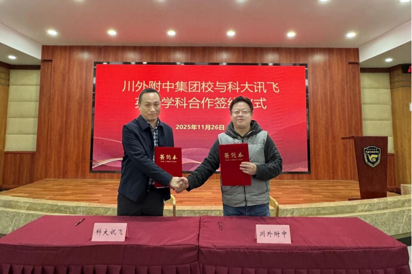 近日,科大讯飞与四川外国语大学附属外国语学校(重庆外国语学校)成功举行英语学科合作签约仪式。双方就英语听说教学与人工智能深度融合达成战略合作,共同探索智慧教育新模式,助力外语教学提质增效。